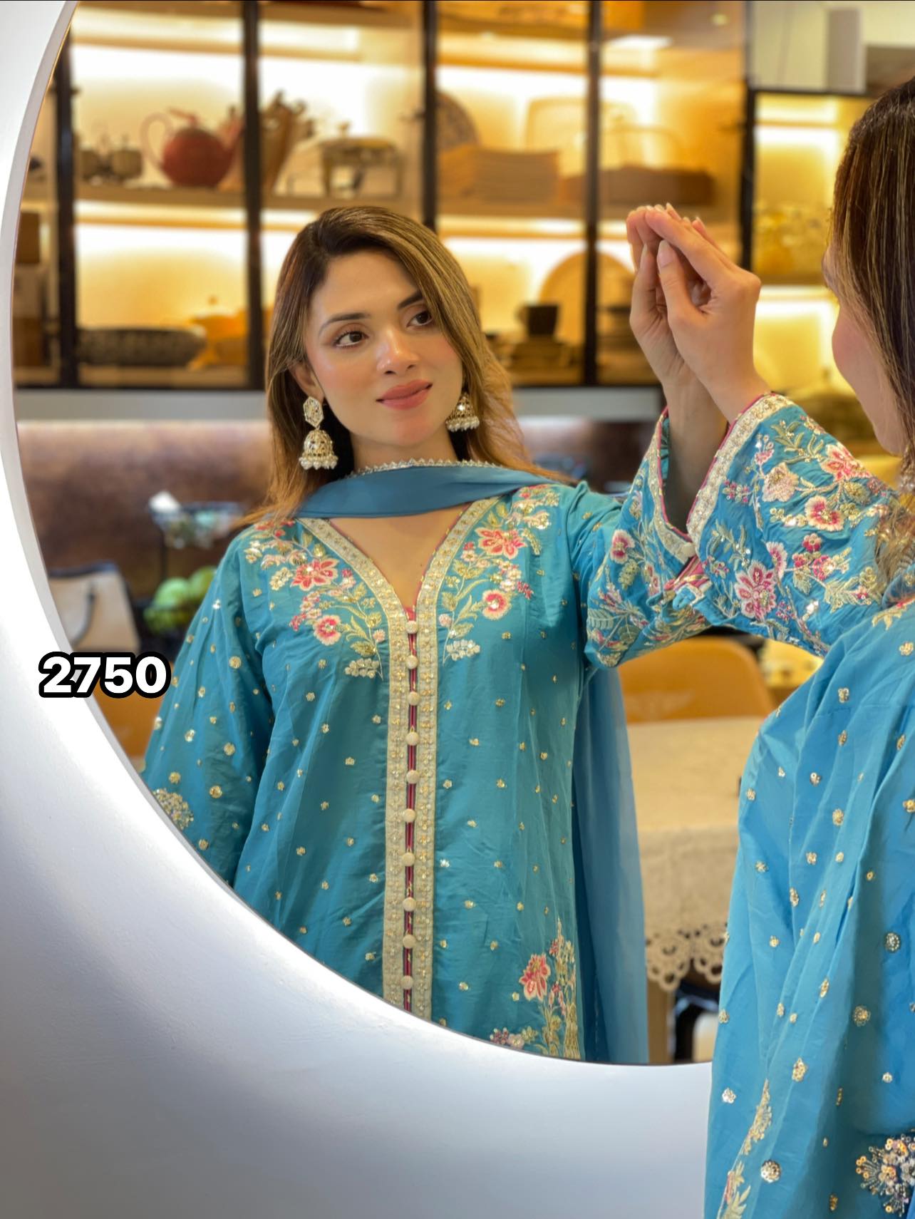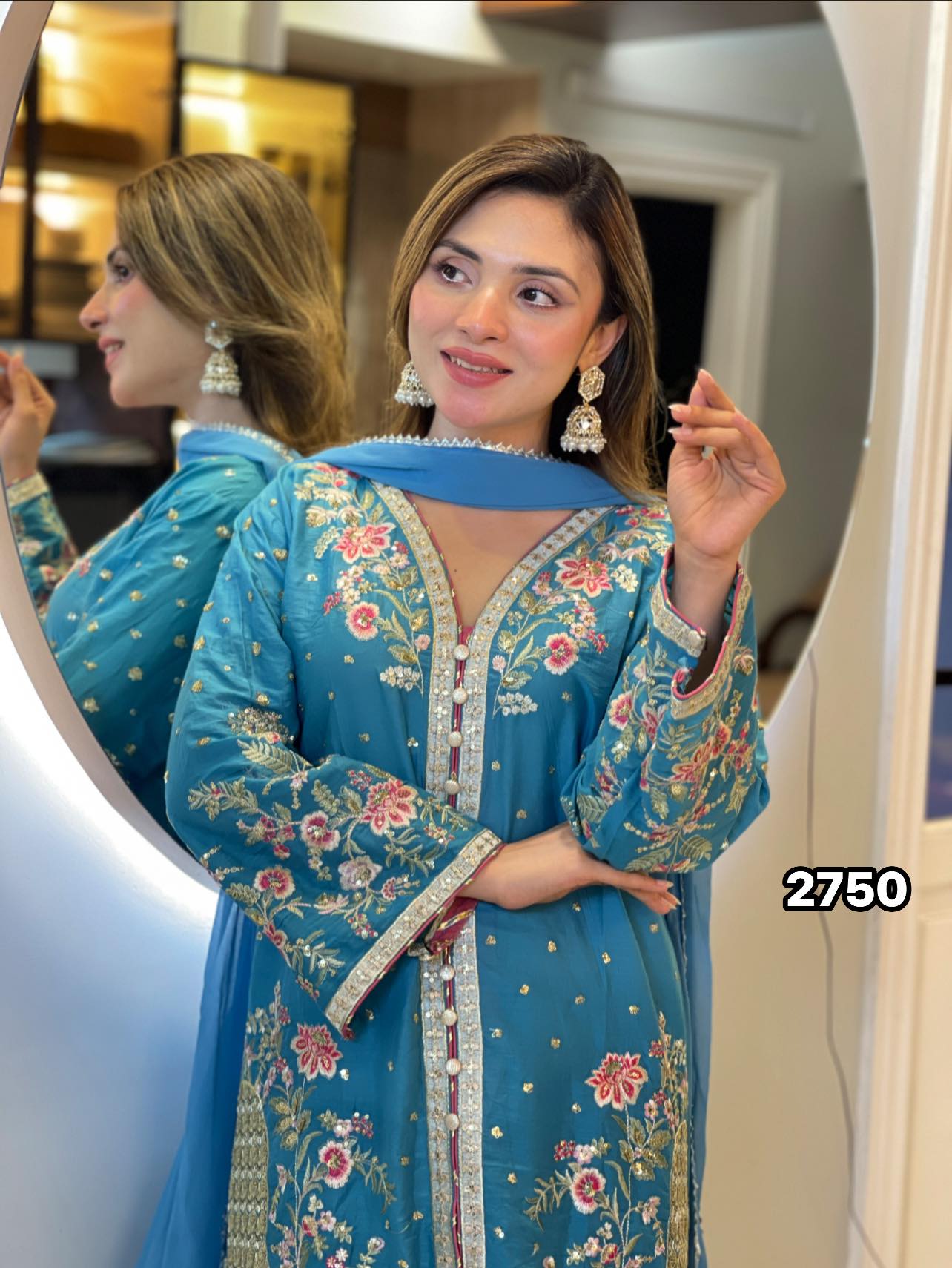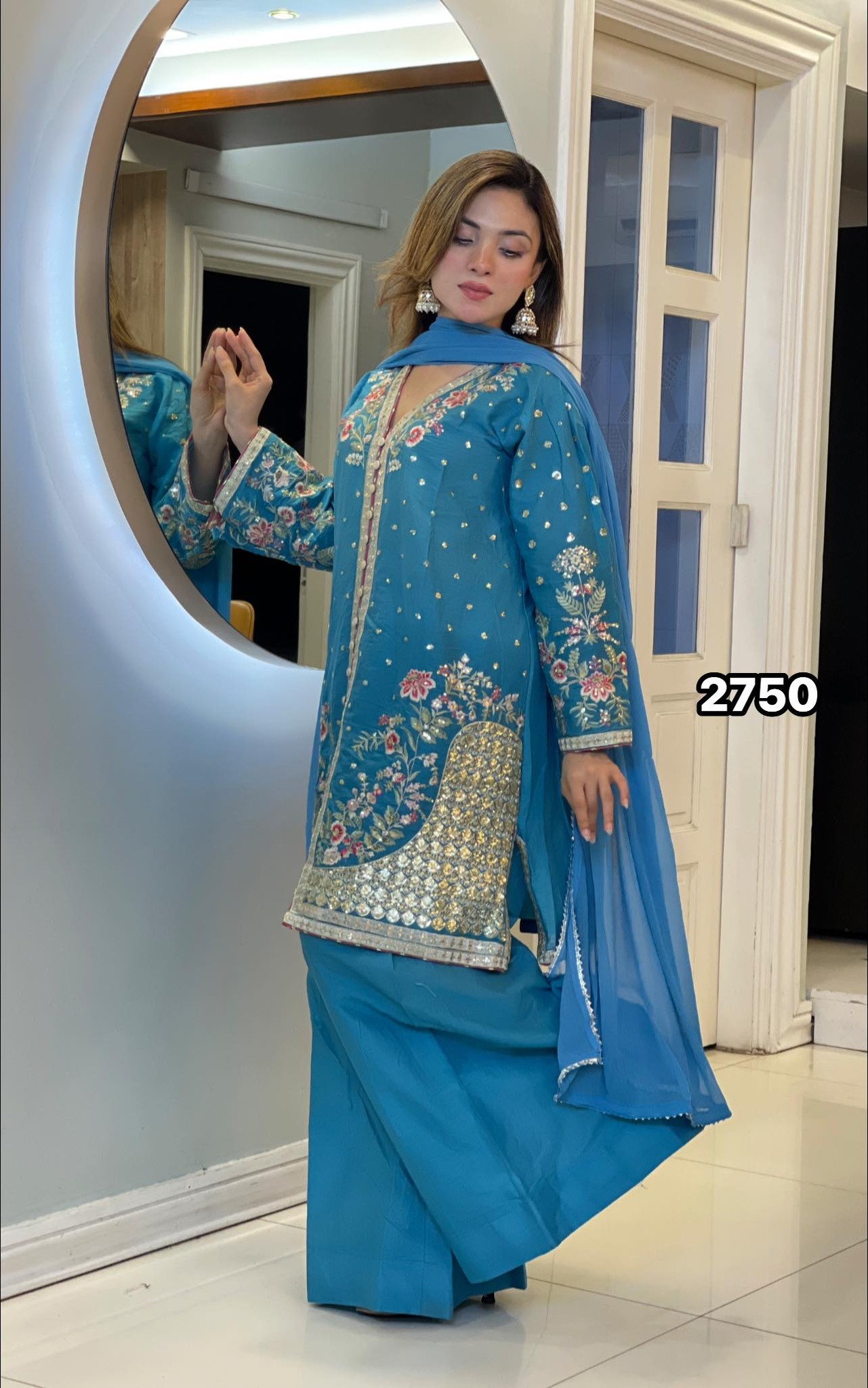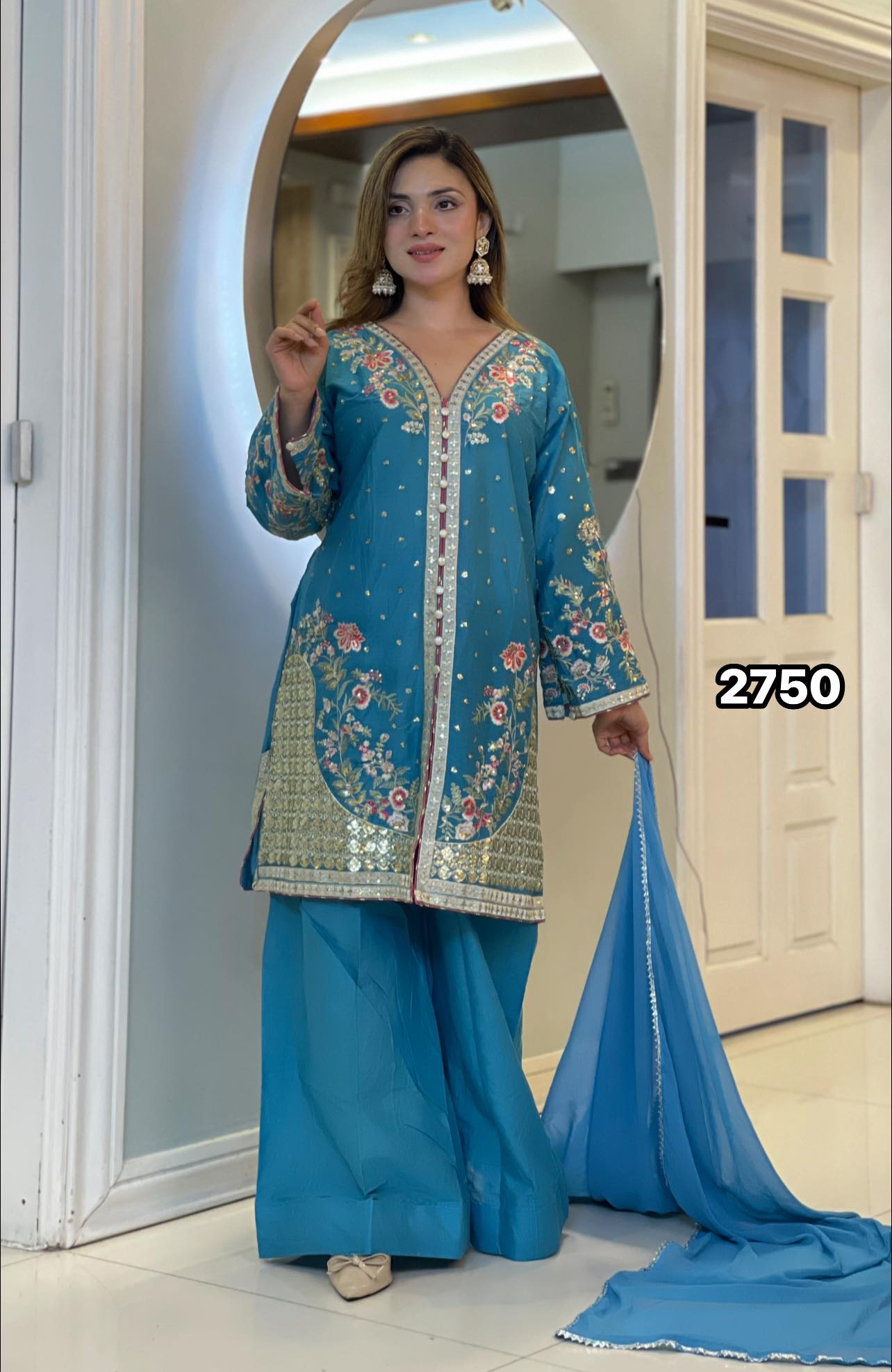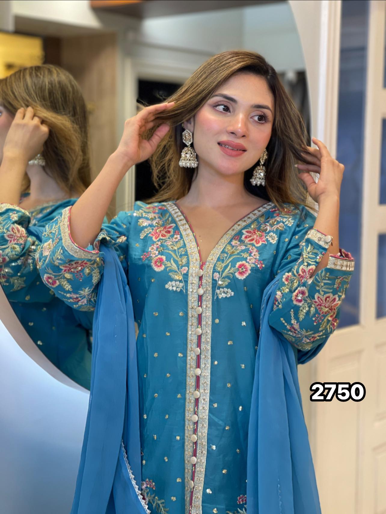 Dupatta (Scarf): A lightweight yet voluminous Net Organza dupatta, beautifully decorated with detailed embroidery to complete the royal look.