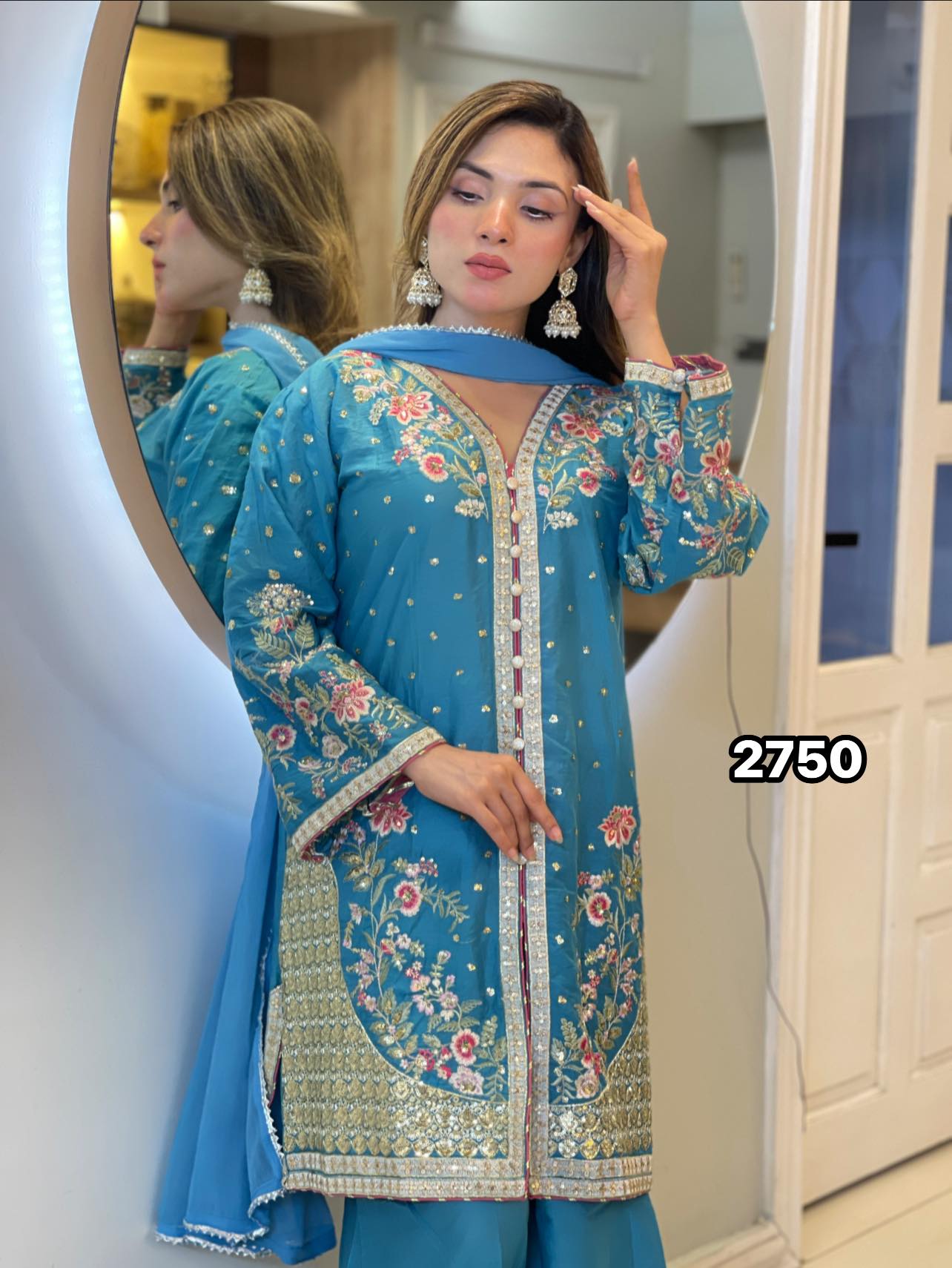 Elevate your elegance with our latest exquisite three-piece set. Crafted from high-quality Premium Silk Cotton, this outfit features intricate Jori embroidery, perfect for making a statement at weddings, parties, or festive gatherings.